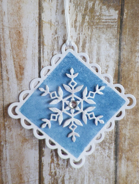 The snowflake was die cut from white card and a layer of diamond stickles and a gem applied for some sparkle.